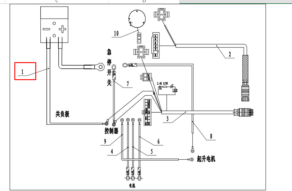 1 Магистраль АКБ для штабелера TS12 (Battery Wire)