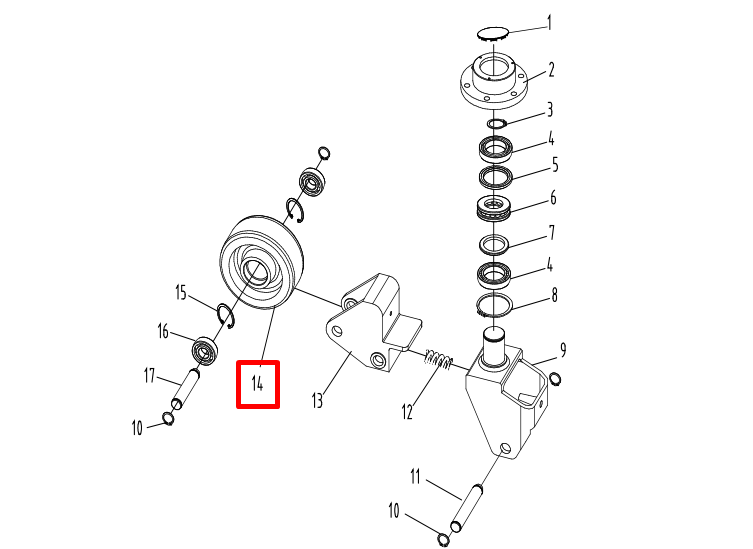 Колесо опорное 127х57 для тележек электрических CBD20R-II