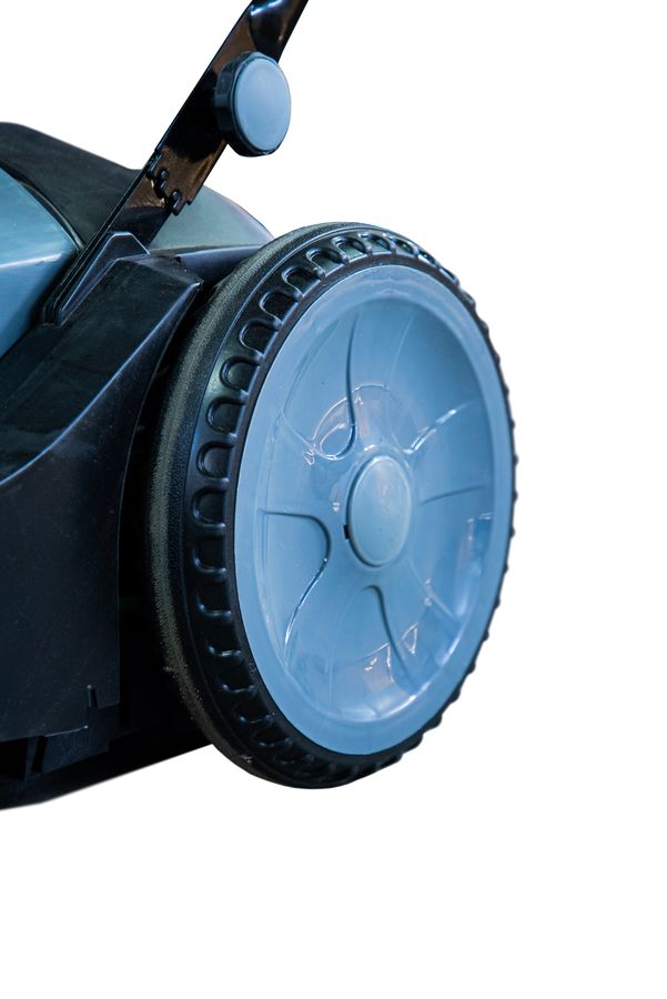 - Три щетки — две боковые убирают мусор вдоль стен и бордюров, основная щетка длиной 48 см собирает отходы в контейнер
