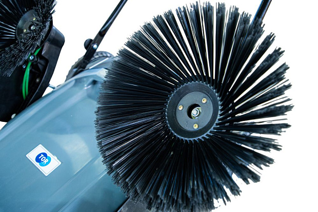 Ширина уборки 92 см, производительность до 2860 м²/час, вместительный контейнер на 55 литров и регулируемая скорость основной щетки обеспечивают высокую эффективность при минимальных усилиях оператора.